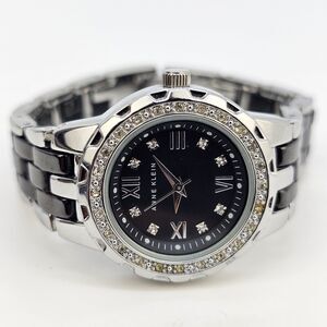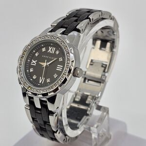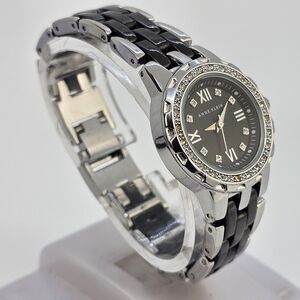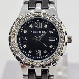 Anne Klein Women's Watch 28MM Black Dial Gray Black Bracelet Band 6" New Battery