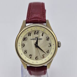 Anne Klein Women's Watch 38MM Gold Dial New Red Leather Band Straps New Battery