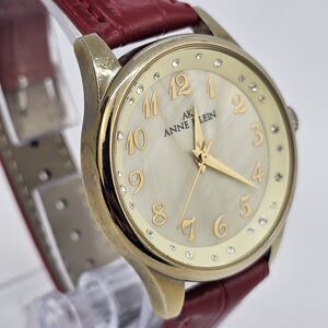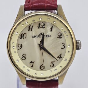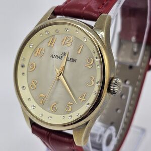 Anne Klein Women's Watch 38MM Gold Dial New Red Leather Band Straps New Battery