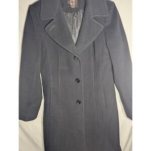 Anne Klein Women's Wool Cashmere Blend Black Pea Coat Size Small Button Up Long