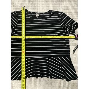 Anne Klein Womens XL Black & White Striped Shot Sleeve Ruffle Bottom Blouse