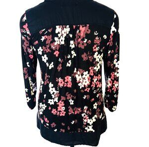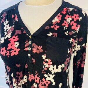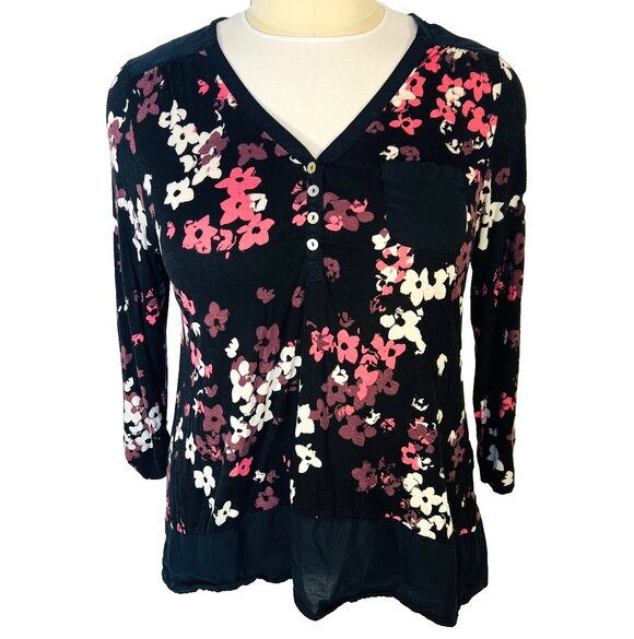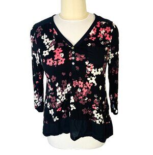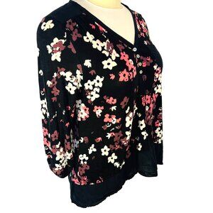 Anne Klein Womens XL Tunic Floral Print 3/4 Rolltab Sleeve Henley Neck