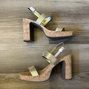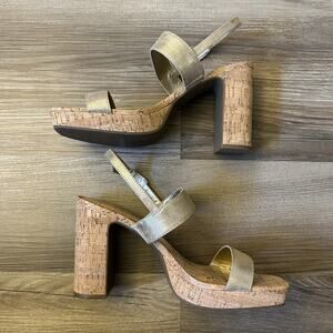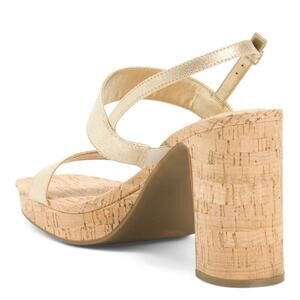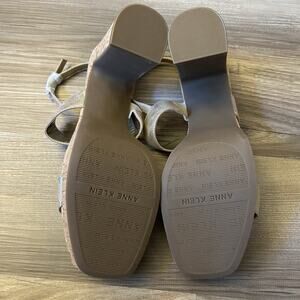 Anne Klein Women's Zaya Block Heel Sandals 4.5" Platinum Ankle Strap Size 10 NWB