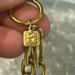 1980s designer Anne Klein Necklace chunky giant paper clip Oval Chain Links Goldtone Vintage Lion tag signed modernist Choker statement mod Rare!
