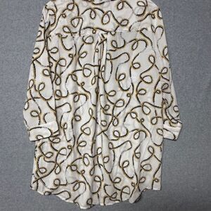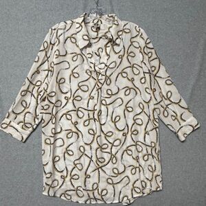 Anne Klein Womens Tunic Top Multicolor Chain Pattern 3/4 Sleeve High Low Size M
