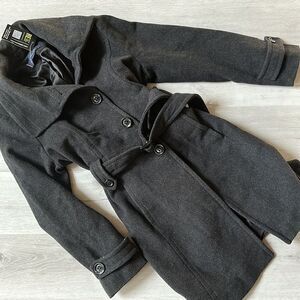 Anne Klein Wool Blend Dark Gray Belted Trench Coat L NWOT