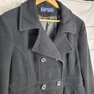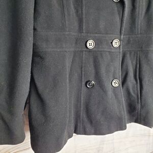 Anne Klein Wool Blend Solid Black Double Breasted Pea Coat Size XL