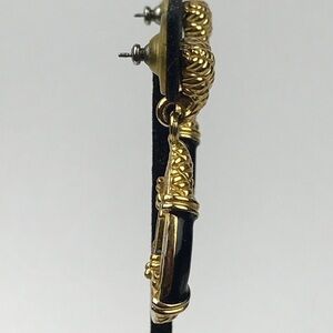 Anne Klein Woven Black Enamel Doorknocker Earring