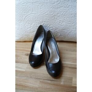 Anne Klein Wystere Classic Black Leather Pumps Closed Round Almond Toe Size 8M