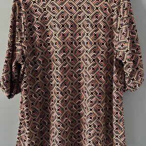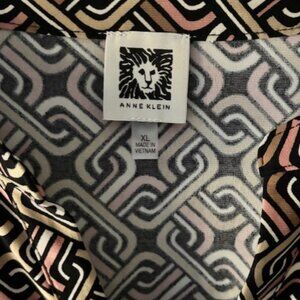 Anne Klein XL Zip Front Black Tan Blouse Geometric Roll Tab V Neck Whimsygoth