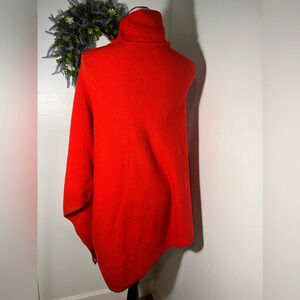 Anne Klein, XS-S, red, slightly ribbed,turtleneck, asymmetrical hem, extremely soft poncho
