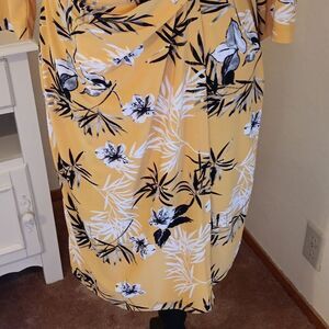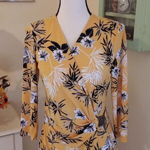Anne Klein Yellow Floral Faux Wrap. Bright, Career, Wedding Guest