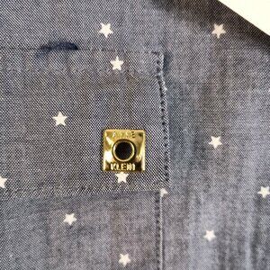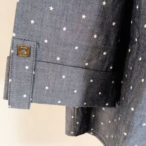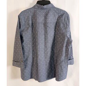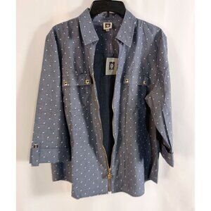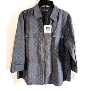 Anne Klein Zip Front Woven Top XL NWT Dark Indigo White Long Sleeve Blouse $79