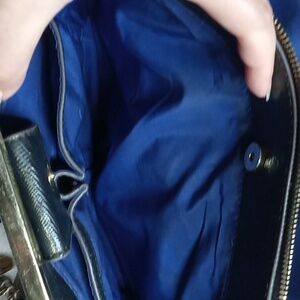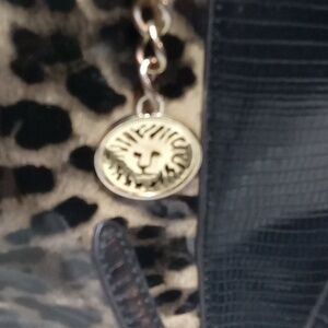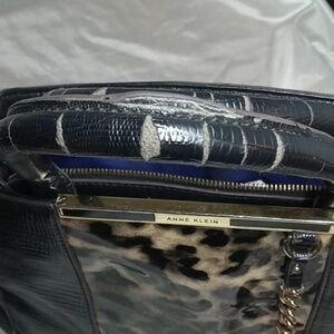Anne Klein alligator skin cheetah handbag. I love the cheetah with the alligator. It goes with anything. The handles are the only place where it has wear, the inside looks decent. Good find. It measures 12 by 9inches.