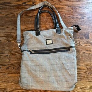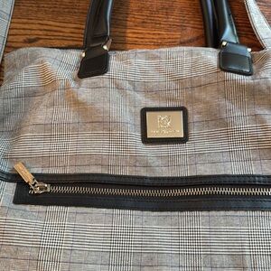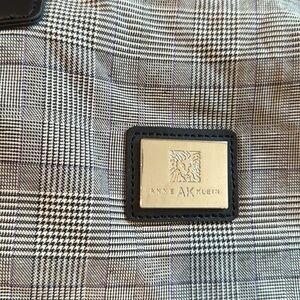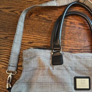 Anne Klein black/white plaid zipper front handle/detachable strap large tote.