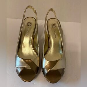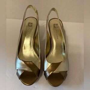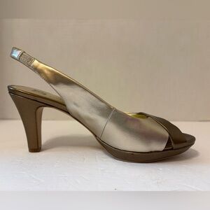 Anne Klein bronze & gold slingback open toe heel sandals size 9 M