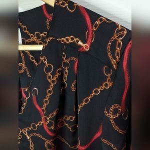 Anne Klein black long sleeve shirt with classic chains and belts design.