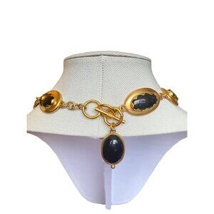 • Brass gold-tone pleated and great conditions, Faux onyx cabochon