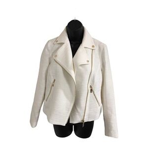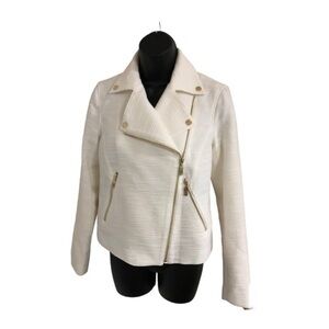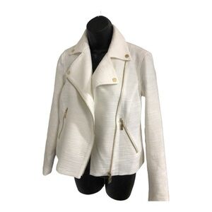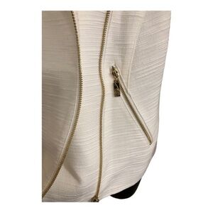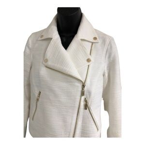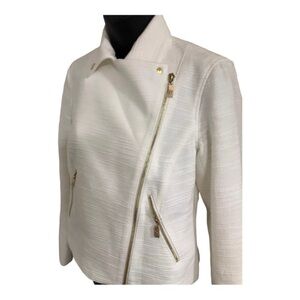 Anne Kleinโ ecru boucle look gold zipper moto style jacket blazer size XS new