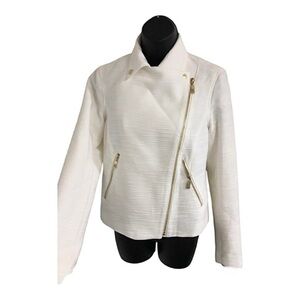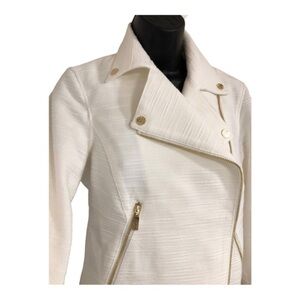 Anne Klein beautiful cream ecru textured boucle look gold zippered moto style jacket blazer size XS new