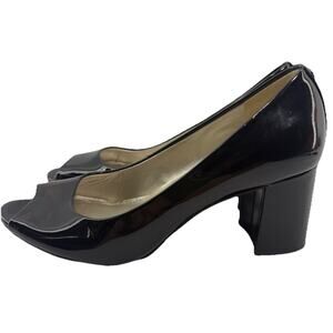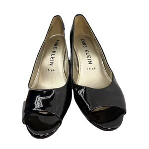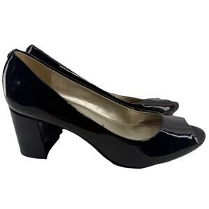 Anne Klein iFlex AK Megan Black Patent Peep Toe Block Heels Women’s 7.5M