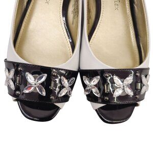 Anne Klein iFlex Aklusita 9M White & Black Leather Slingback Heels With Crystal