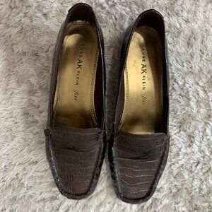 Anne Klein *iFlex Dark Brown Croc-Embossed Loafers, size 7M