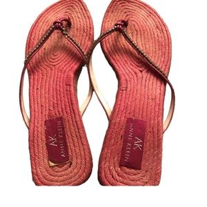 Anne Klein size 10 pink rhinestone thong sandals with rubber soles