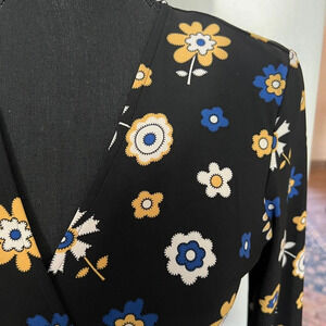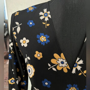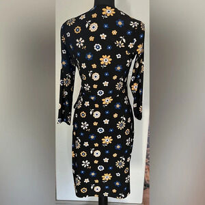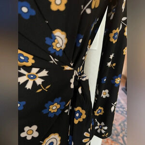 Anne Klein size 6 floral black with yellow blue and beige false wrap dress