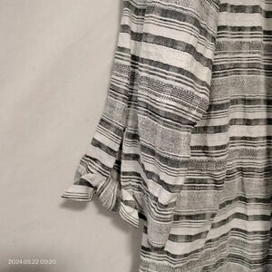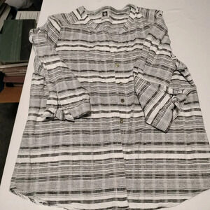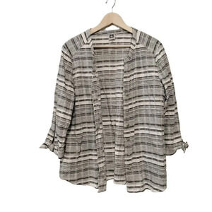 Anne Klein size Large Gray Off White Striped Linen Blend Button Up Shacket