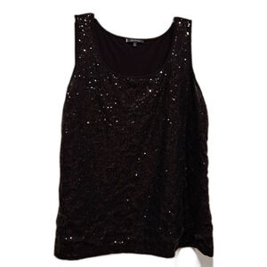 Anne Klein sleeveless tank top blouse, black with glitter sequins on front sz 2X