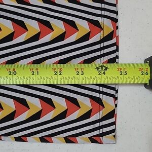 Anne Klein sleeveless top with a colorful abstract chevron design size Large. Features reddish orange, yellow, and black accents.