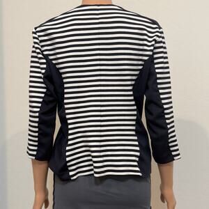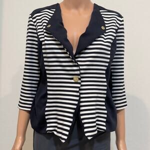 Anne Klein small stripe color block 1/2 sleeve jacket blazer C2 2405