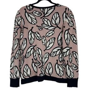 Anne Klein Womens size Large sweater long sleeve Leaf Print jacquard C3956