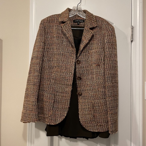 Size 14 Anne Klein tweed suit jacket and matching brown skirt set, both size 14