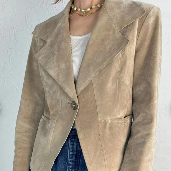 Anne Klein vintage suede 100% leather light tan blazer. Size PS