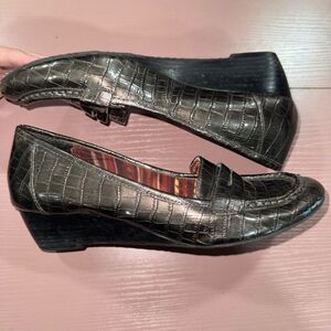 Anne Klein wedge loafer Metallic Pewter size 7