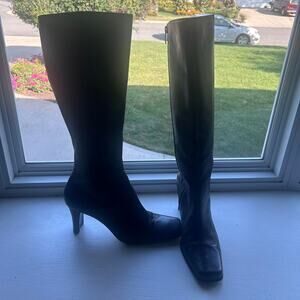 Anne Klein women’s size 10 Black leather knee-high boots with 3” heel. In great condition!