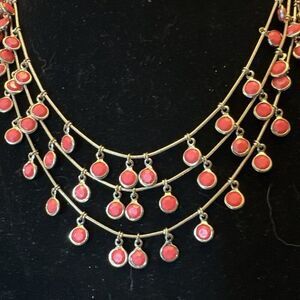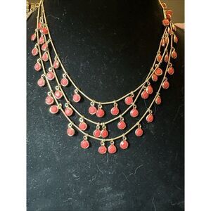 Anne Klein Bezel Multi Strand Layered Shaky Coral Color Necklace