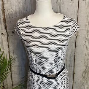 New without tags super cute and flattering cap sleeve dress with white and black ripple pattern textured dress. Black patent belt. Hidden back zipper. Fully lined. Excellent new condition. Smoke free home. Bundle and save! Check out my love notes!
