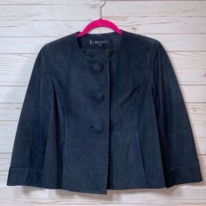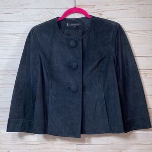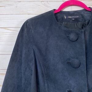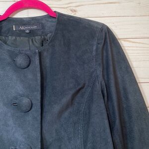 Anne Klein Blue Leather Suede Button Front Blazer Jacket