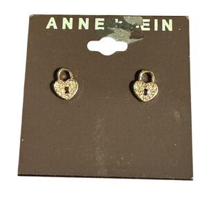 Anne Klein Heart Lock Earrings with Crystal Accents