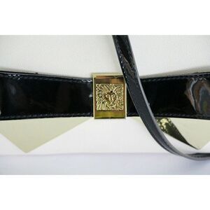 Anne Klein IVORY COATED GENUINE LEATHER PATENT BLACK GOLD BOW CHAIN STRAP FLAP MAGNETIC SHOULDER BAG CLUTCH