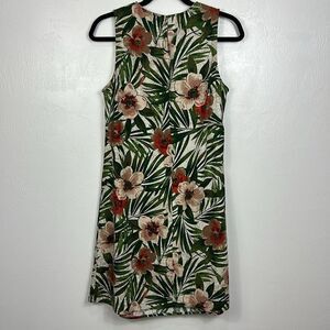 Anne Klein Linen Blend Tropical Print Sleeveless Shift Dress Size 10