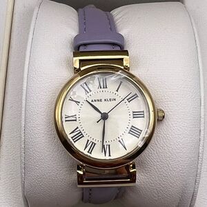 Anne Klein Round Cream Dial Gold Plated Watch w/ Lavender Leather Band New