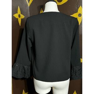 Anne Klein Size Small Black Cropped Jacket, Fluted Lace Sleeves