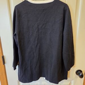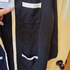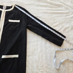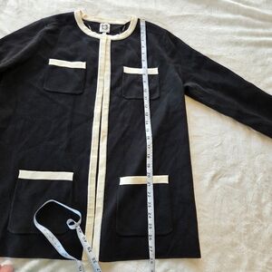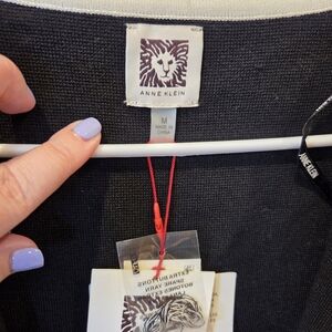 Anne KleinTipped Patch-Pocket Cardigan Women's Medium Black Open Front