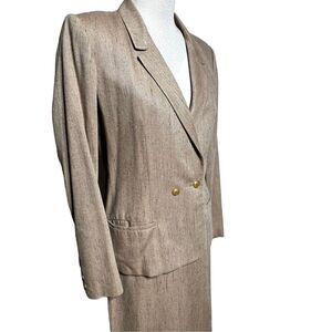 Anne Klein Vintage Double Breasted Blazer Jacket Raw Silk Skirt Set Size Small