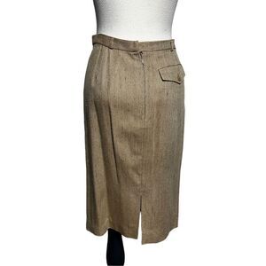 Still in fantastic condition. Blazer is double breasted, lined, had front pockets, and has a tapered fit. Laying flat measures 19" from pit to pit, 17" in the waist, shoulder to the hem is 24", and sleeves are 24". Skirt is not lined, has a zipper hook closure in the back, a flapped pocket, and belt loops. Laying flat measures 14.5" in the waist, 16" in the hips, and waist to the hem is 25".