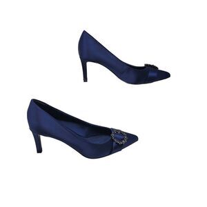 Anne Klein Womens Midnight Blue Satin Pointed-Toe 3" Heels Formal Buckle Sz 9.5